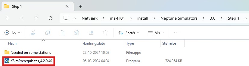 - Step 5 – I 3.6 mappen ligger der så 3 nye mapper og dem tager du så i de 3 trin de er delt op i. Start med Step 1 og installer den fil der hedder “KmSimPrerequisites”, som ligger de Windows installations filer ind på computeren der skulle være nødvendig for at kunne installere skibssimulatoren korrekt.