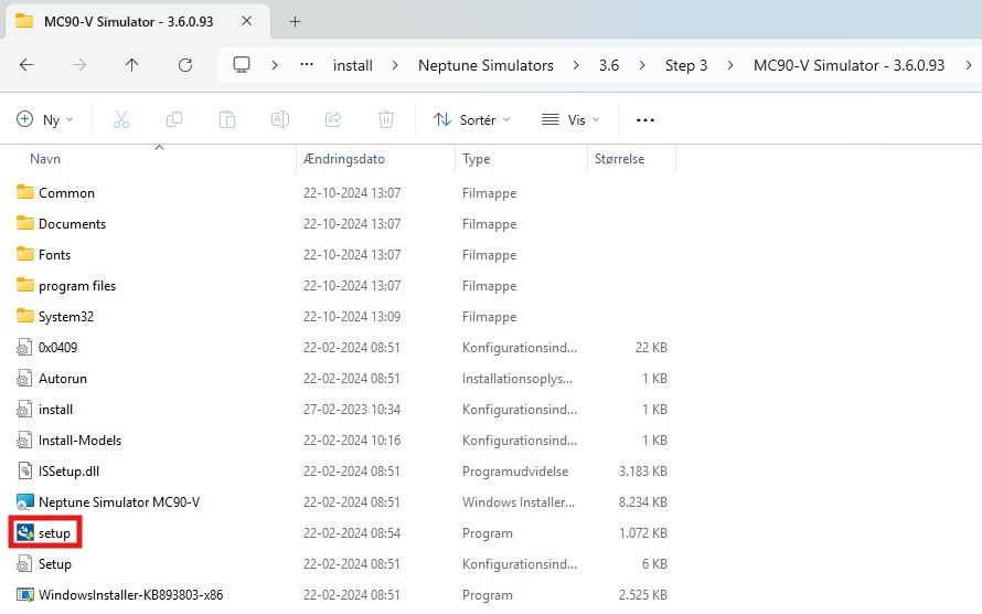 - Step 3 – Når du er kommet ind på “Install” mappen så vælger du “Neptune Simulators”.