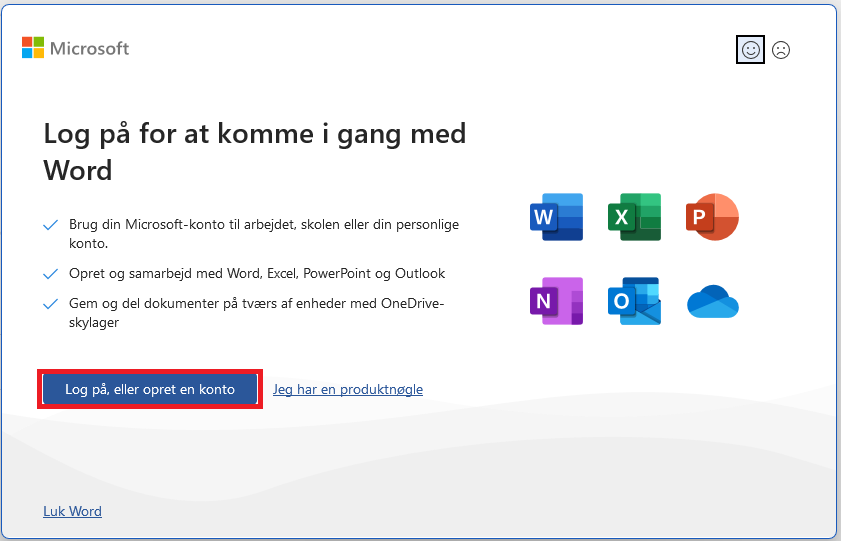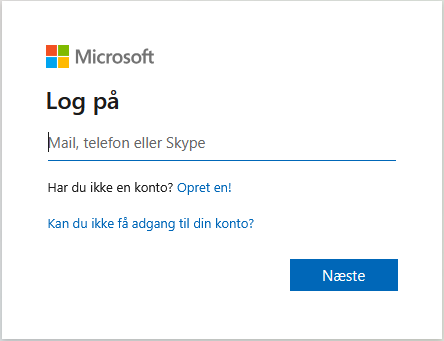 Nu har du fået Office pakken installeret på din enhed (pc/mac) – Nu skal der logges korrekt ind – Så hvis du starter med Word og åbner så vil du blive mødt af den her login skærn første gang du åbner programmet: