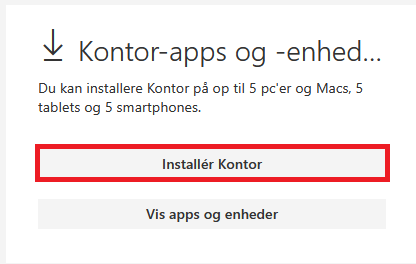 Inde på oversigten for din konto skal du vælge “Installer Kontor” så downloader den en fil der hedder OfficeSetup og så kan du installere Office-pakken på din pc/mac ved at køre filen: