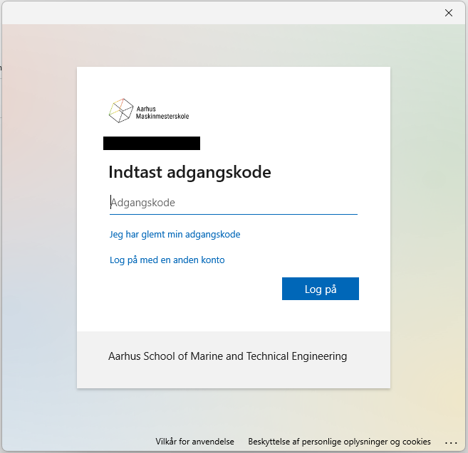Du vil nu komme frem til en login boks hvor du indtaster studienummer efterfulgt af @aams.dk
