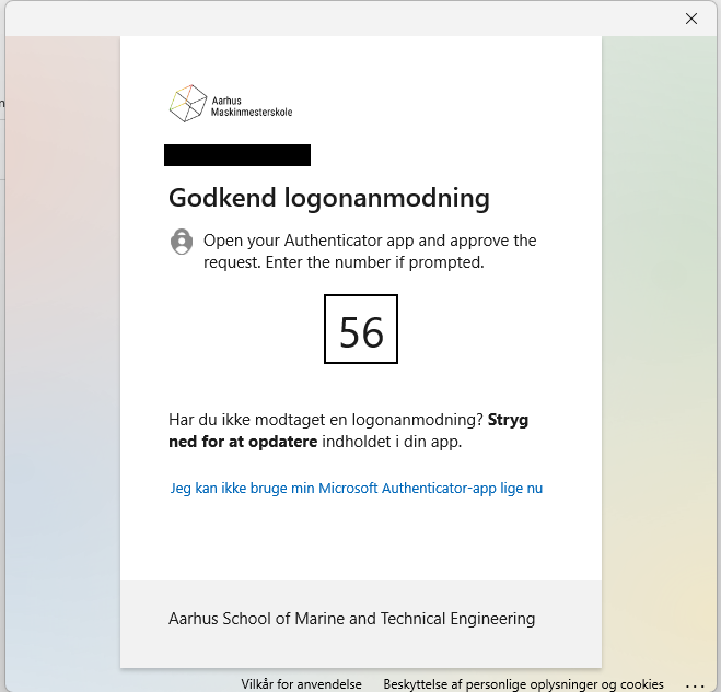 Hvis MFA er sat korrekt op vil du blive bedt om at taste koden på din Authenticator app og godkende dit login: