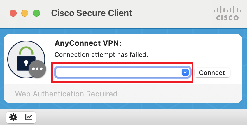 - Step 6 – Nu er programmet installeret og du har fået givet de korrekte rettigheder til programmet. Første gang du åbner for klienten og du skal forbinde til programmet der vil du se en tom linje på klienten. Du har fået en fil med i mappen som du hentede på linket i første step. Den fil der hedder VPN har den linje du skal indtaste og så trykker du “Connect”